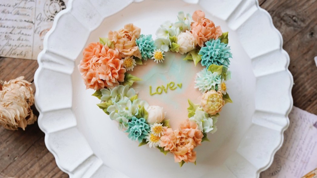 韓式裱花技法|【義式奶油霜】心型蛋糕