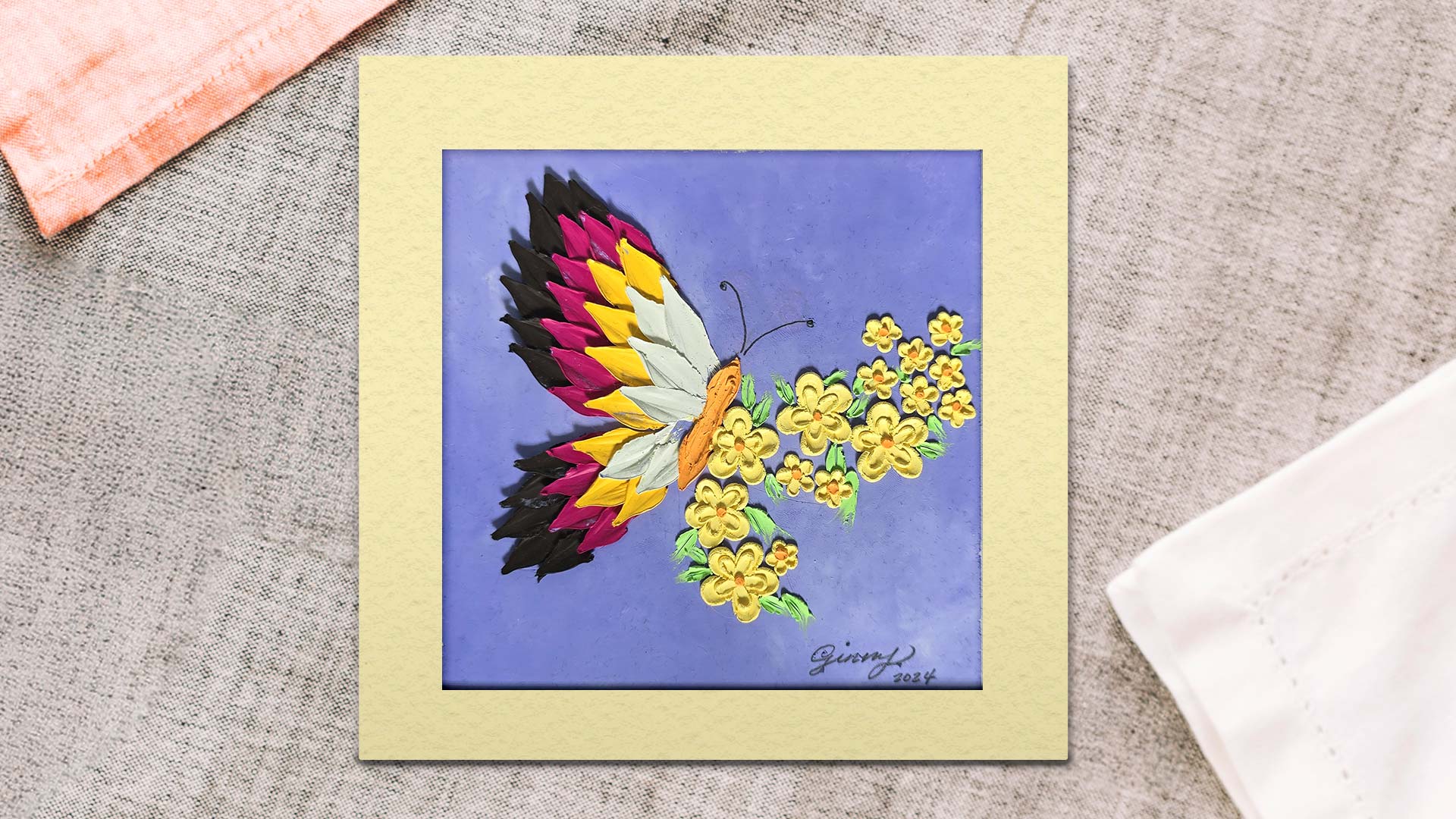 翩翩彩蝶_奶油肌理立體畫