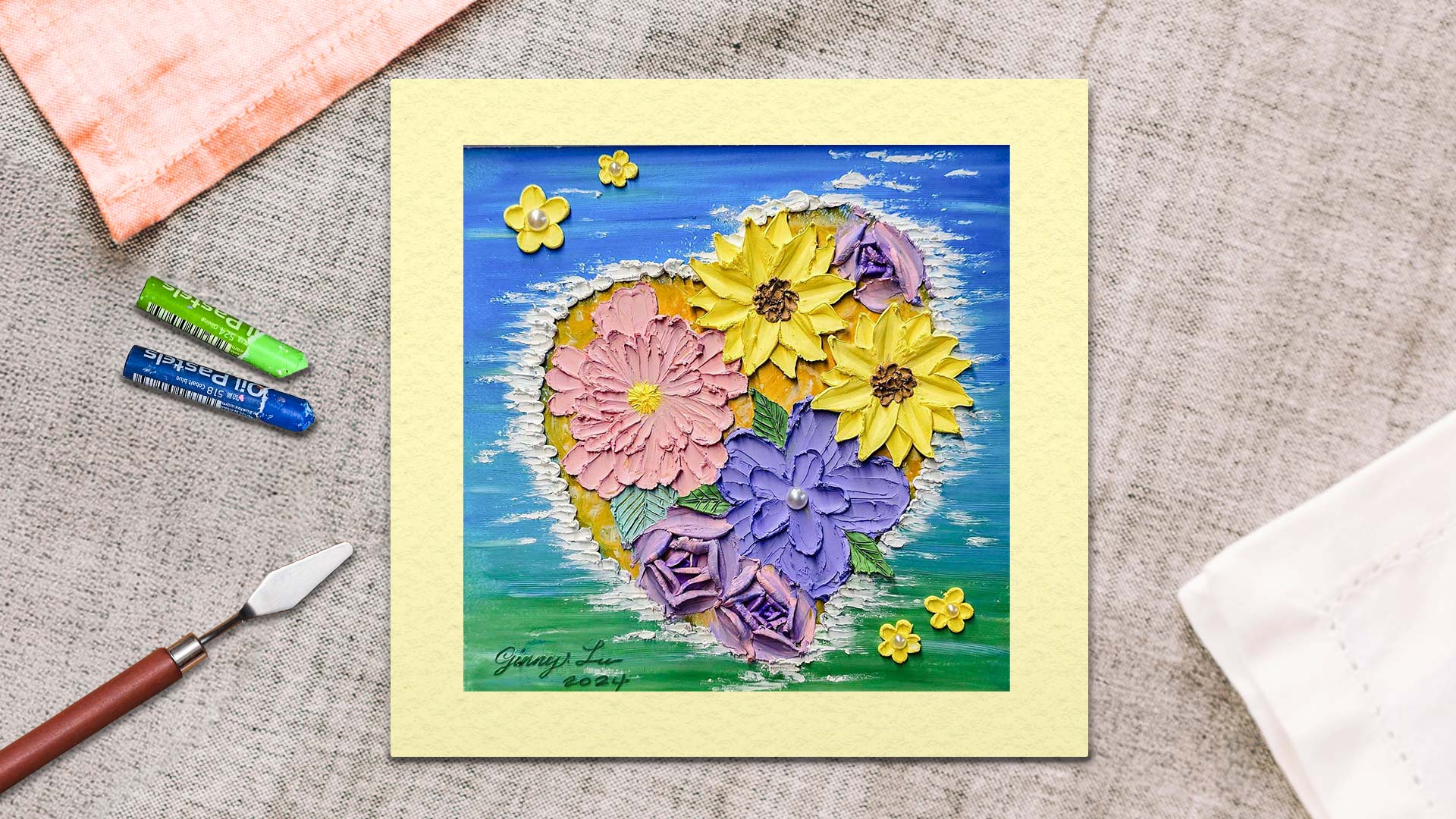 學會如何在海中建立小島,並搭配各式花朵來增添畫面的豐富性,教您如何使用半圓珍珠來創造花蕊。