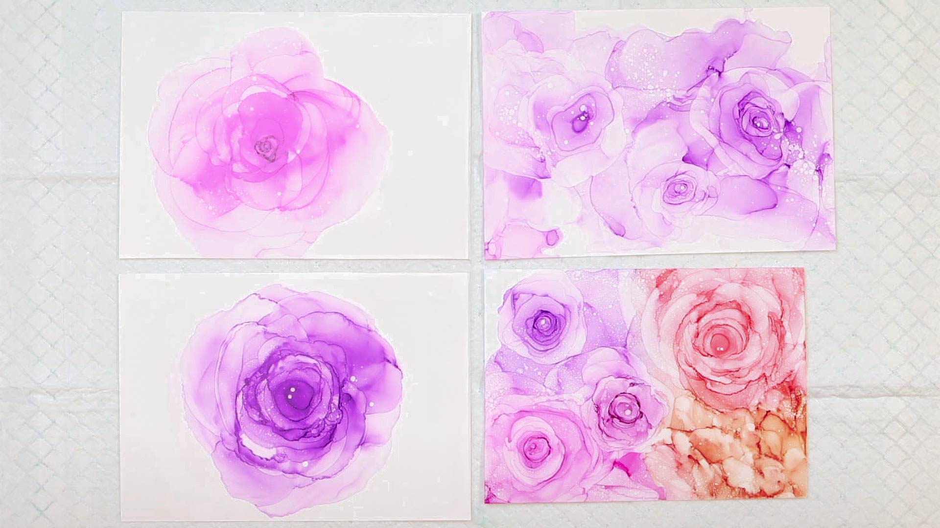 *以熱風槍、吹風機,一熱一冷的交替,透過前幾個單元中學會的技巧,創作出瓣瓣相疊的酒墨玫瑰花,更重要的是每一朵玫瑰的盛開,都需要耐心、持續的練習!