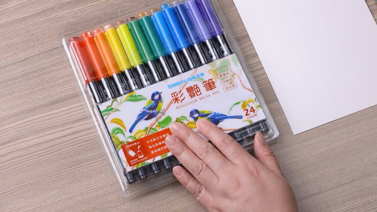 1.雄獅彩豔筆 24 色一盒,0.1 代針筆一支、太字牛奶筆一支
