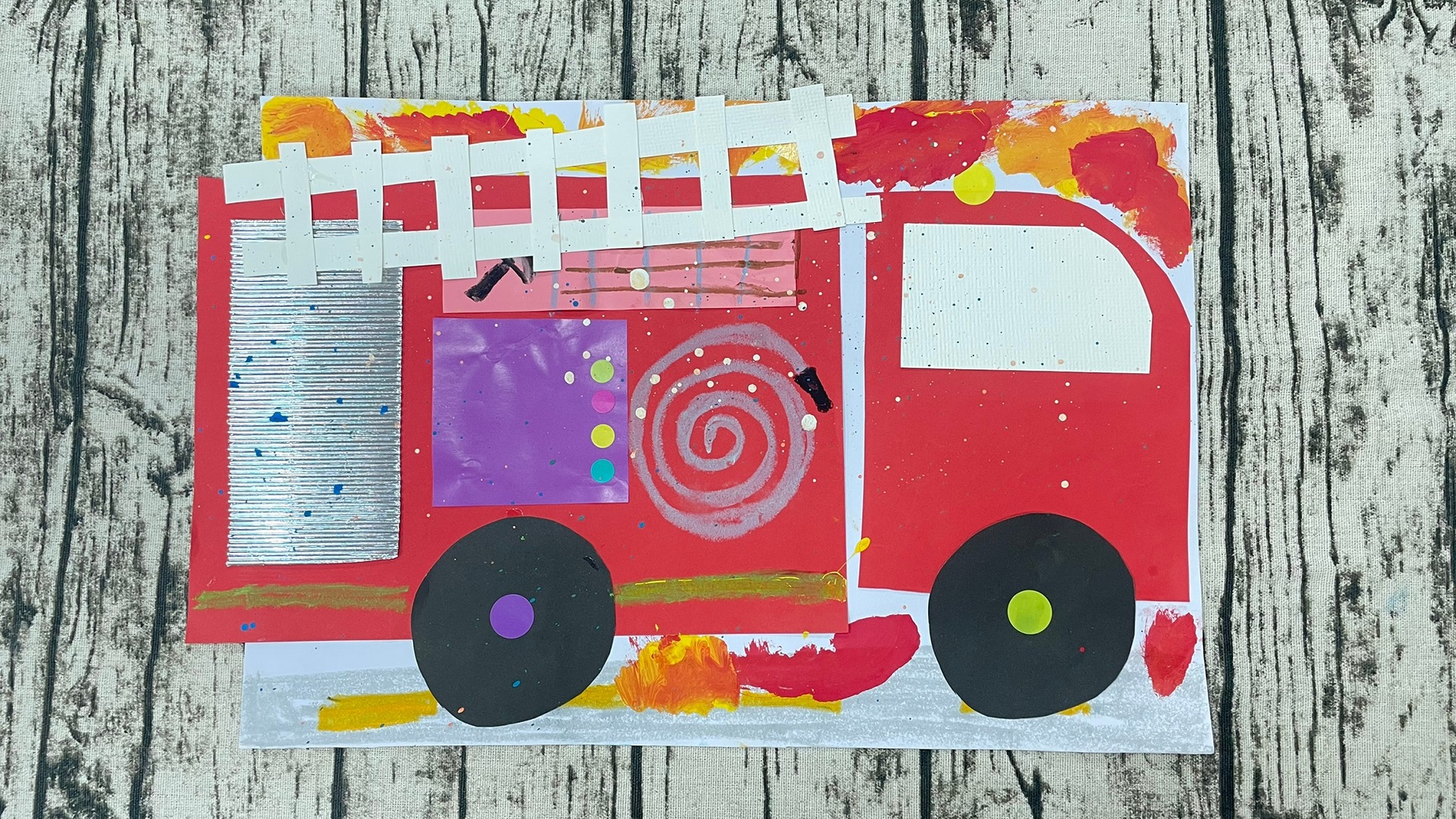運用紙雕與水彩創作消防車,培養孩子對交通工具的觀察力與手作技巧,激發勇敢助人的想像力。