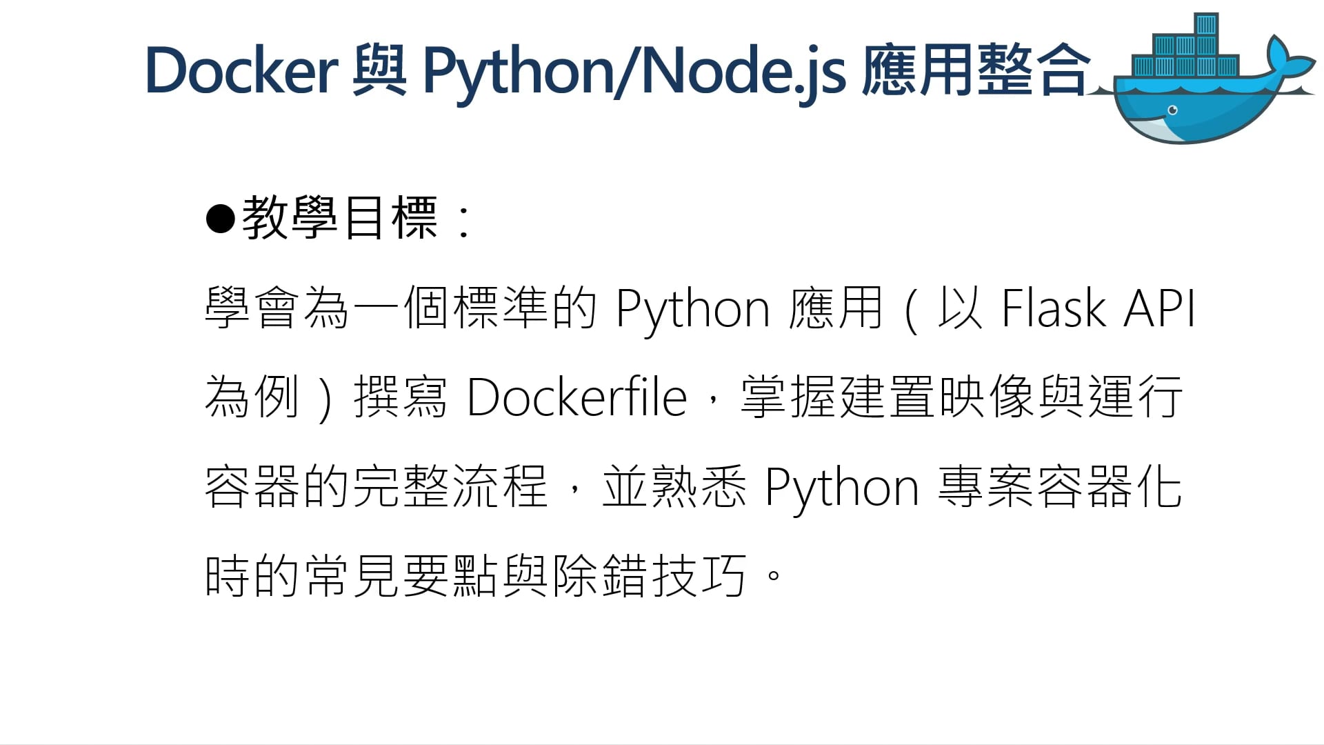 模組六:程式語言實務範例 – Docker 與 Python_Node.js 應用整合 (實戰演練) 課堂簡述: