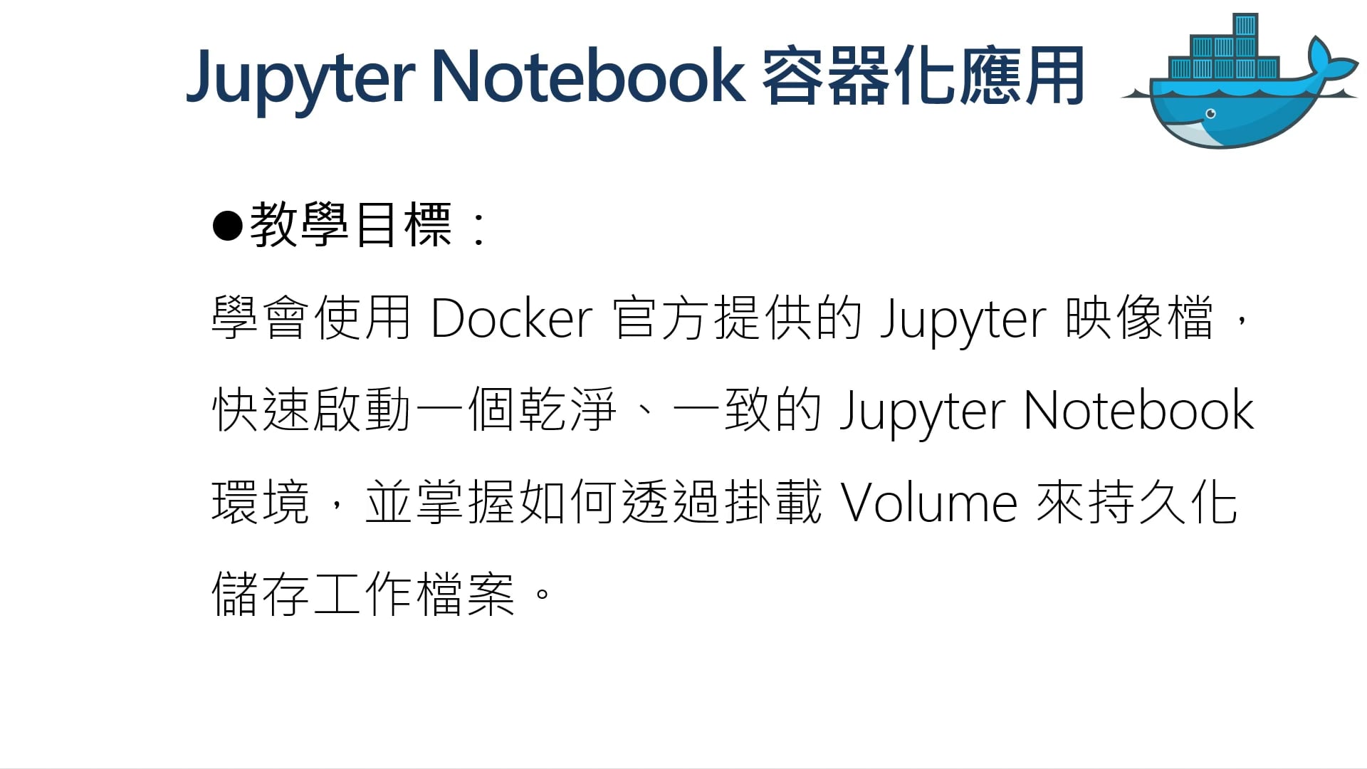 本模組專注於資料分析工作環境的容器化,示範如何將 Jupyter Notebook 與 Pandas 等工具封裝成可重複部署的環境,協助數據分析師與工程師快速建立一致且可攜的分析平台。