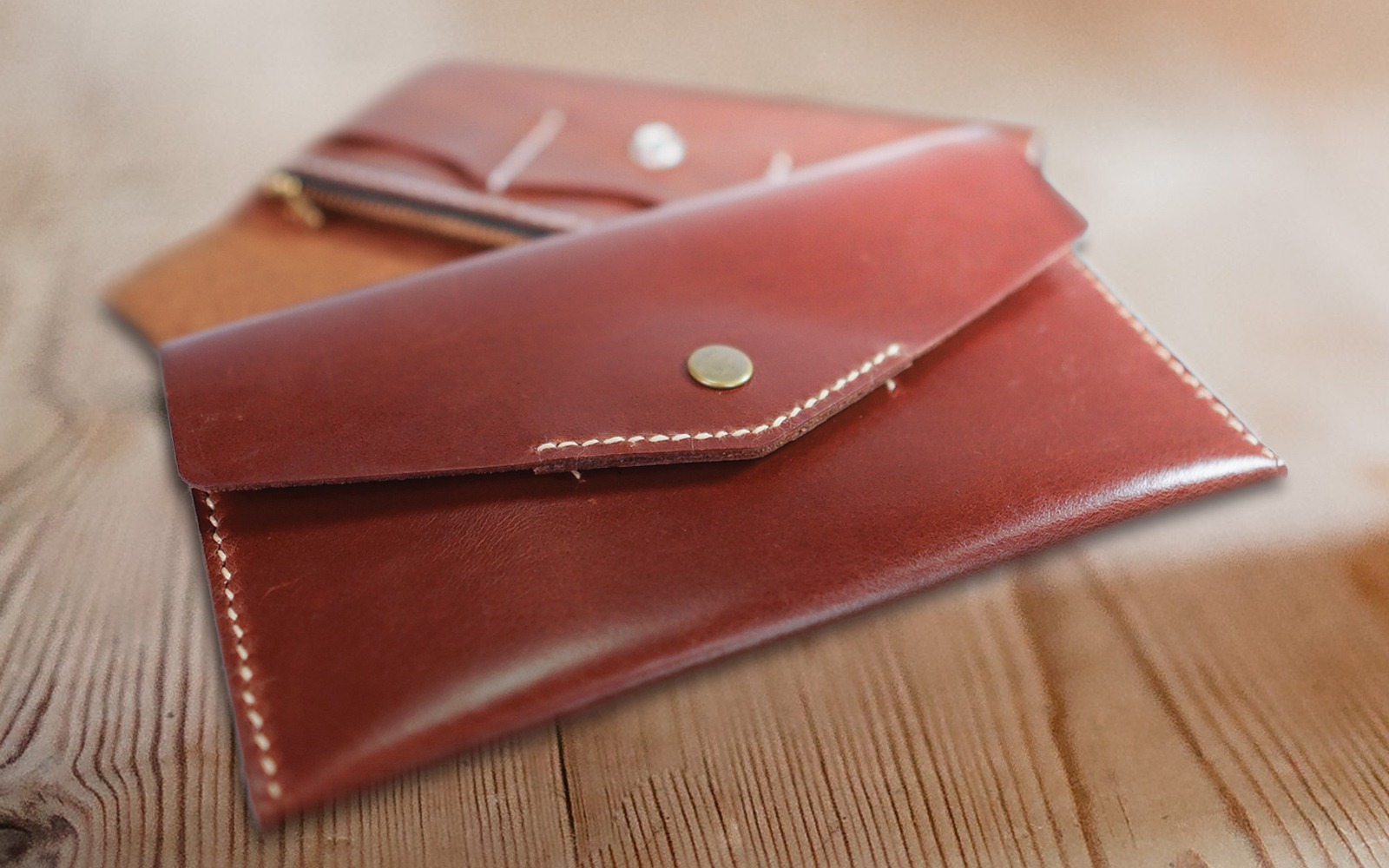 包覆長夾。設計有三個卡夾與拉鍊零錢袋,側邊可放置紙鈔。