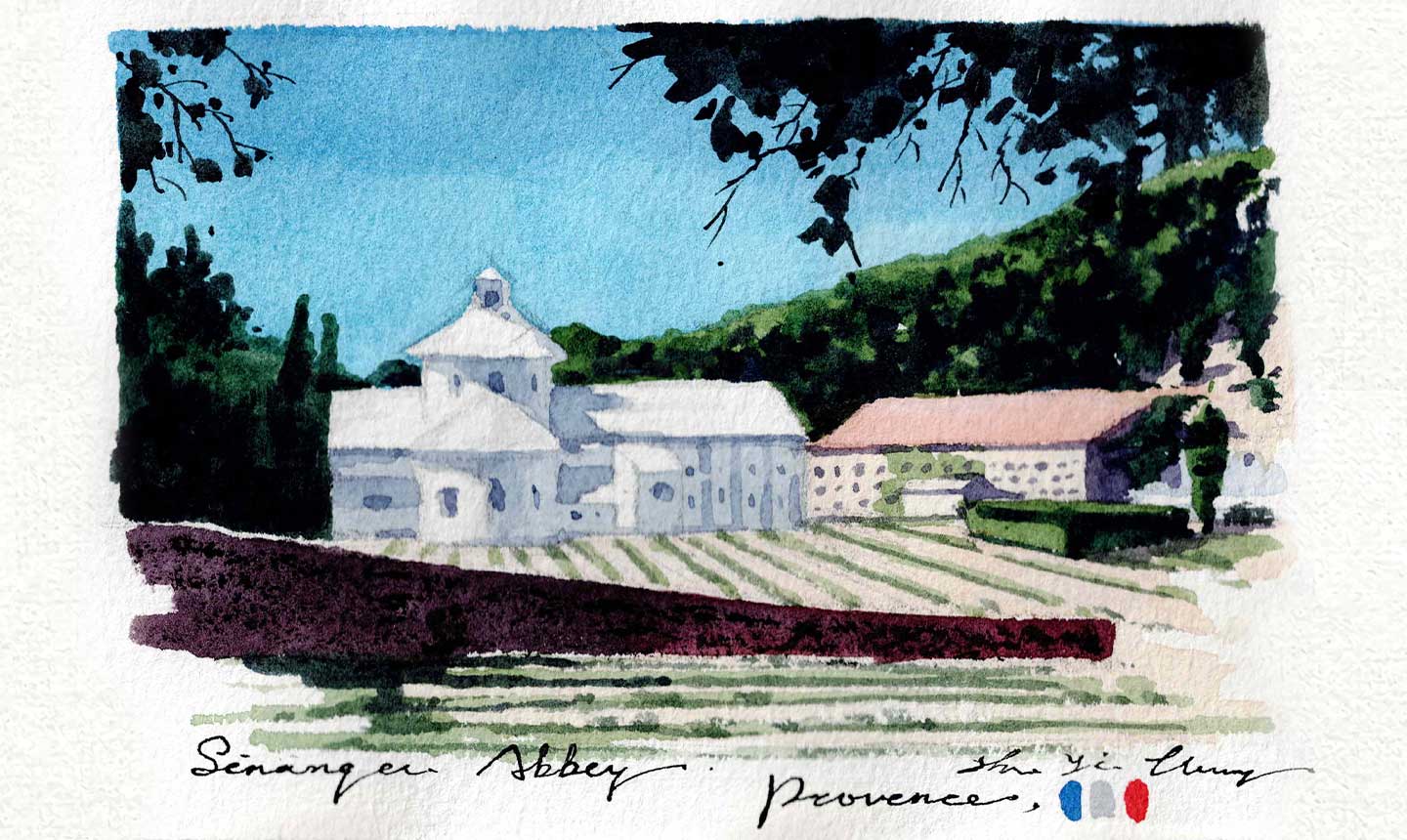 •  風景的第一篇,我們來到法國南部普羅旺斯,用上前面所學的綜合技法,畫出一張明信片修道院一景。