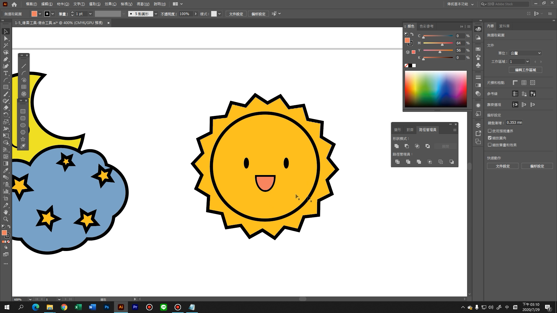 用幾何工具畫出可愛星月吧