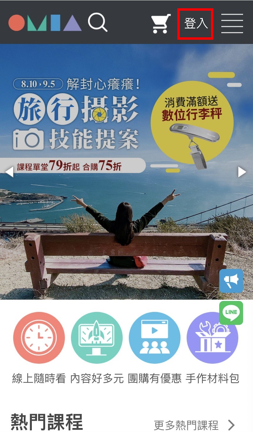 步驟一、進入OMIA學東西官網,點選右上角[登入],登入您的購買帳號。