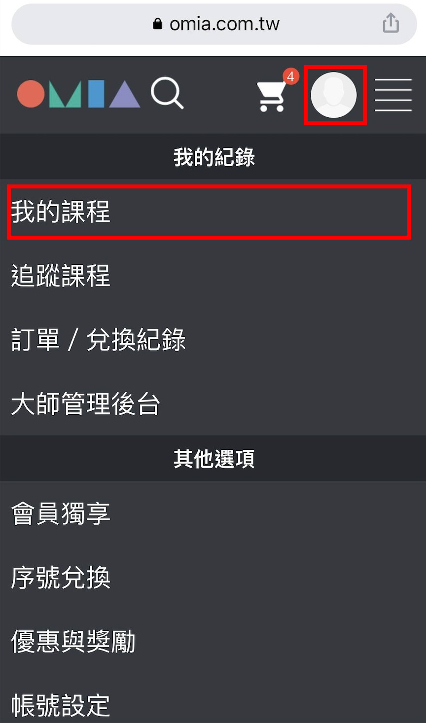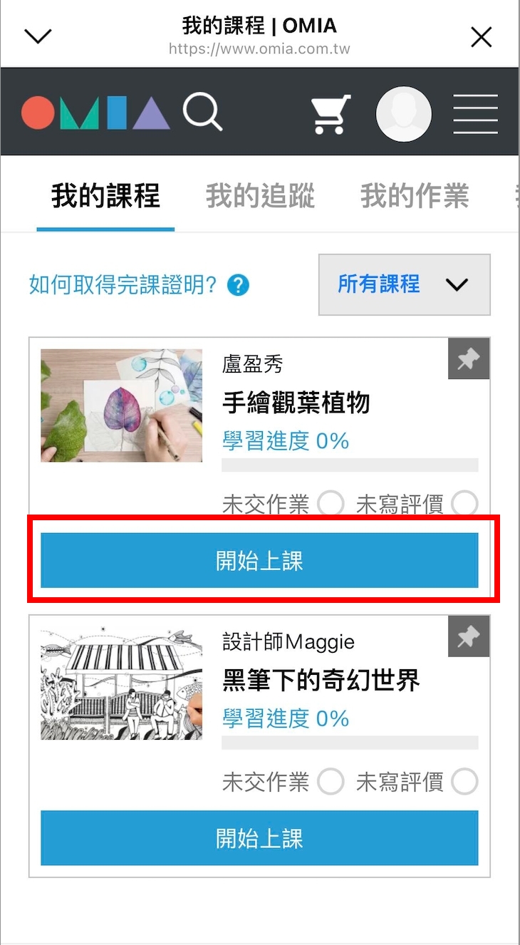 步驟二、點選右上角[頭像]→[我的課程]。
