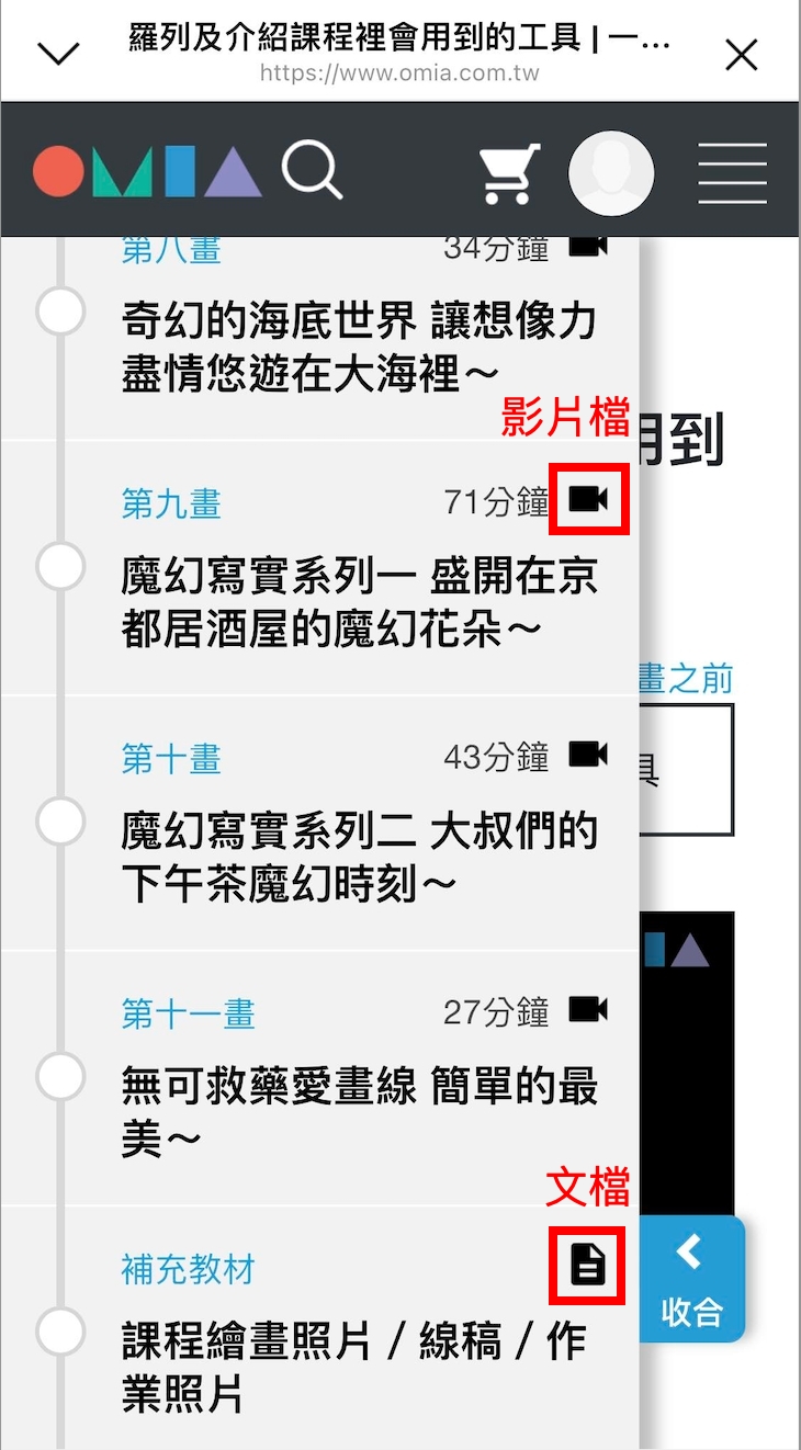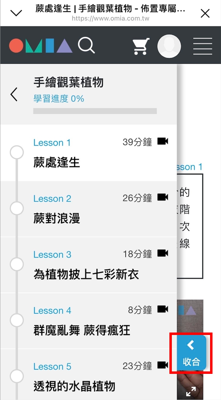步驟四、頁面會載入你尚未看過的章節,點擊「收合」關閉左側選單。